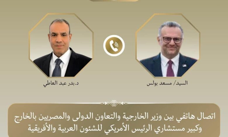 أجرى بدر عبد العاطي وزير الخارجية والهجرة وشؤون المصريين بالخارج اتصالًا هاتفيًا مع مسعد بولس كبير مستشاري دونالد ترامب للشؤون العربية والأفريقية، وذلك لمتابعة تطورات الأوضاع في لبنان ومستجدات الوضع الإقليمي في ظل التصعيد العسكري الذي تشهده المنطقة.