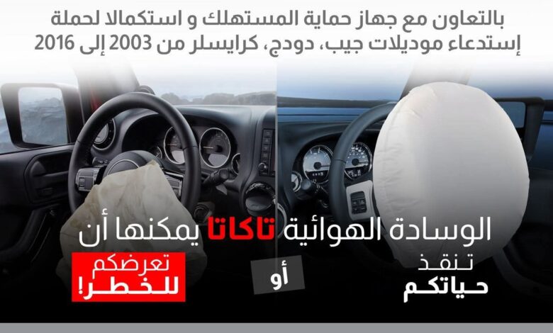 استدعاء سيارات جيب وكرايسلر في مصر بسبب عيب تصنيعي في الوسائد الهوائية “تاكاتا”