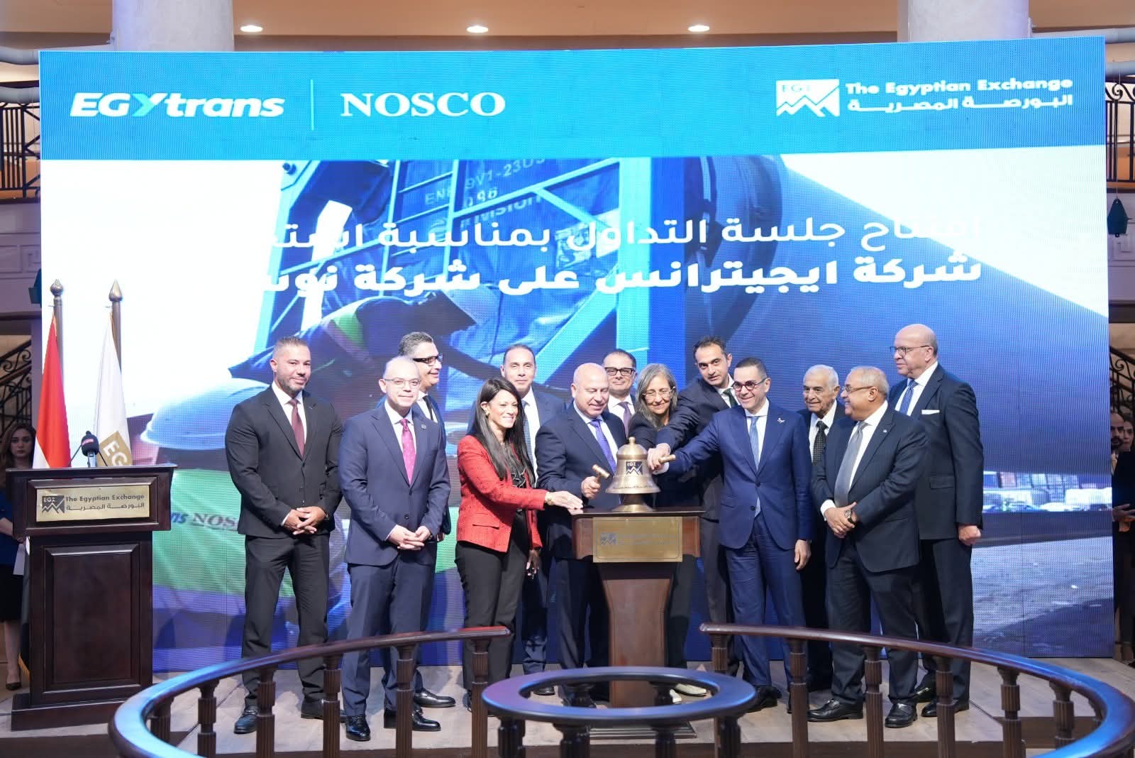 القاهرة – شهدت البورصة المصرية اليوم جلسة تداول خاصة احتفالًا بإتمام صفقة استحواذ شركة إيجيترانس على الشركة الوطنية لخدمات النقل وأعالي البحار “نوسكو”، وذلك بحضور الفريق مهندس كامل الوزير، نائب رئيس الوزراء للتنمية الصناعية وزير الصناعة والنقل، والمهندس حسن الخطيب، وزير الاستثمار والتجارة الخارجية، والدكتور شريف فاروق، وزير التموين والتجارة الداخلية، والدكتور إسلام عزام، رئيس البورصة المصرية، وعدد من كبار المسؤولين.