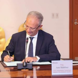 وقع الاتفاقية المهندس/ عمرو محفوظ الرئيس التنفيذى لهيئة تنمية صناعة تكنولوجيا المعلومات، والسيد/ سعيد أميدى المؤسس والرئيس التنفيذى لشركة “بلاج آند بلاى”.