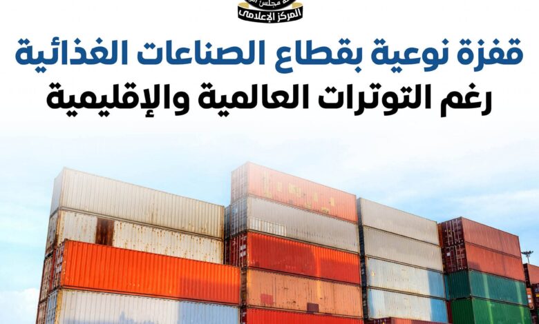 وأوضح المركز أن قطاع الصناعات الغذائية شهد خلال السنوات الأخيرة توسعًا ملحوظًا في الطاقات الإنتاجية، إلى جانب تحديث خطوط التصنيع، وتطوير منظومة الجودة وسلامة الغذاء وفقًا للمعايير الدولية، فضلًا عن إطلاق مبادرات تمويلية ميسرة لدعم الشركات والمصانع، وفتح أسواق تصديرية جديدة، ما انعكس في زيادة معدلات التصدير وتعظيم مساهمة القطاع في دعم الاقتصاد الوطني.