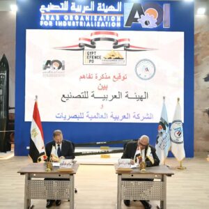 وقّعت الهيئة العربية للتصنيع مذكرة تفاهم مع الشركة العربية العالمية للبصريات، في خطوة تستهدف دعم التكامل الصناعي وتوطين التكنولوجيا في الصناعات الدفاعية المتطورة.
