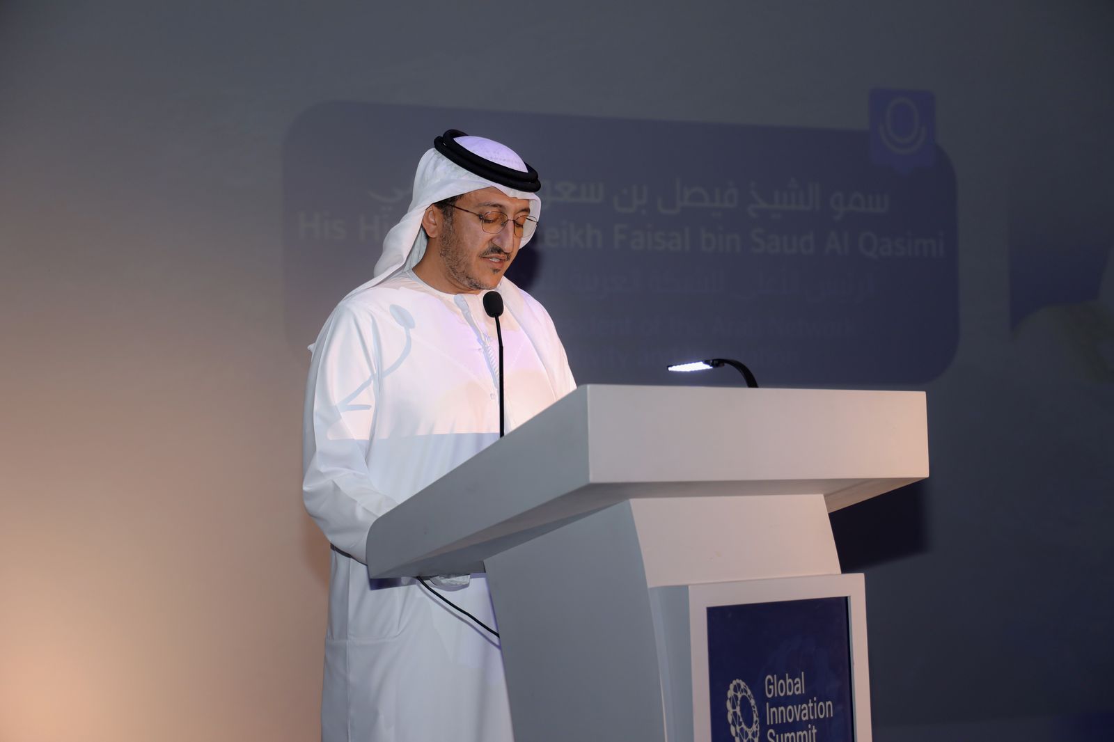 وافتُتحت القمة بكلمة ترحيبية من الشيخ فيصل سعود القاسمي، الرئيس الأعلى للشبكة العربية للإبداع والابتكار، الذي استهل حديثه بالترحيب بضيوف دبي والمشاركين في القمة، حيث قال ان الابتكار اليوم ليس خيارًا، بل ضرورة وليس ثقافة عامة، بل أسلوب عمل وليس عملية تطويرية، بل استراتيجية بقاء.” وأن هذه الرؤية التي أرستها قيادتنا الرشيدة جعلت من الإمارات نموذجًا عالميًا في استشراف المستقبل وصناعته، وأكدت أن الابتكار لم يعد مجرد مفهوم نظري، بل أصبح ركيزة أساسية في كافة القطاعات، من الاقتصاد إلى التعليم، ومن التكنولوجيا إلى الحوكمة الذكية.