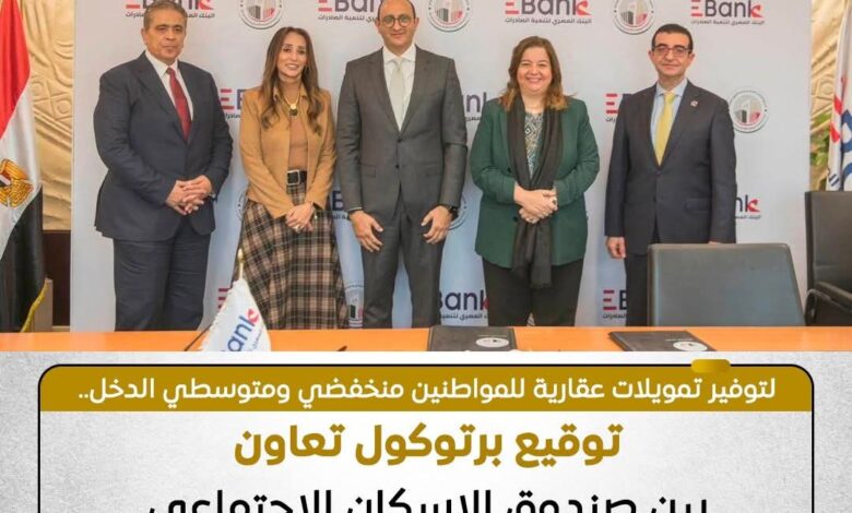 وقع صندوق الإسكان الاجتماعي ودعم التمويل العقاري بروتوكول تعاون مع البنك المصري لتنمية الصادرات (EBank)، لتوفير تمويلات عقارية بقيمة 500 مليون جنيه لصالح المواطنين من منخفضي ومتوسطي الدخل، في إطار دعم جهود الدولة لتوسيع مظلة التمويل العقاري وتعزيز فرص تملك السكن المناسب.