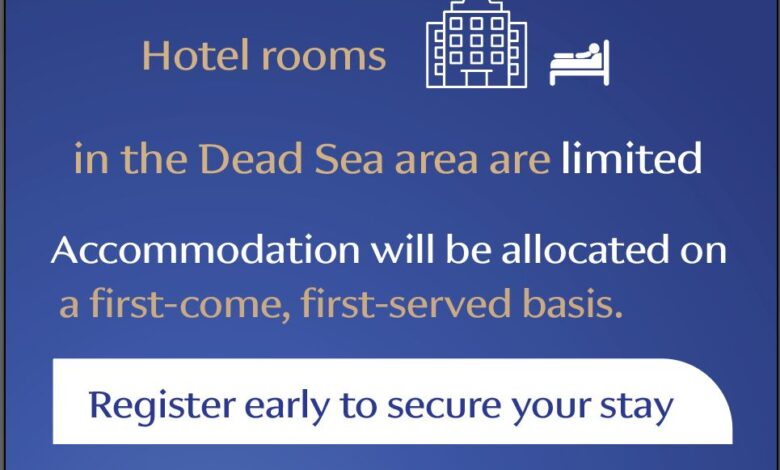 يسرّ اللجنة المنظمة للمؤتمر العام الخامس والثلاثين للاتحاد العام العربي للتأمين (GAIF 35) دعوة الراغبين بالمشاركة إلى المبادرة بالتسجيل المبكر، لضمان توفر الإقامة الفندقية في منطقة البحر الميت خلال فترة انعقاد المؤتمر.