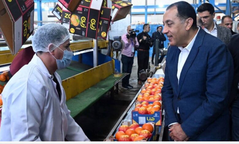جاء ذلك خلال تفقد رئيس الوزراء لمعرض منتجات الشركات الصناعية، إلى جانب زيارته لمحطة «الصواف» لتعبئة الموالح والحاصلات الزراعية، ضمن جولته التفقدية بالمنطقة.