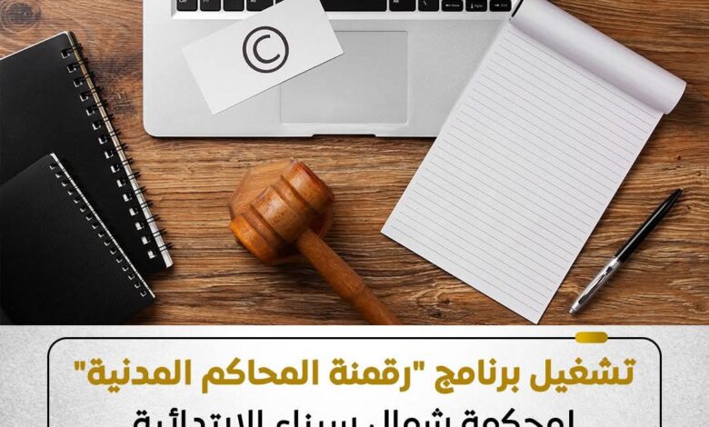 وزارة العدل: تشغيل برنامج “رقمنة المحاكم المدنية” بمحكمتي شمال سيناء الابتدائية والعريش الجزئية