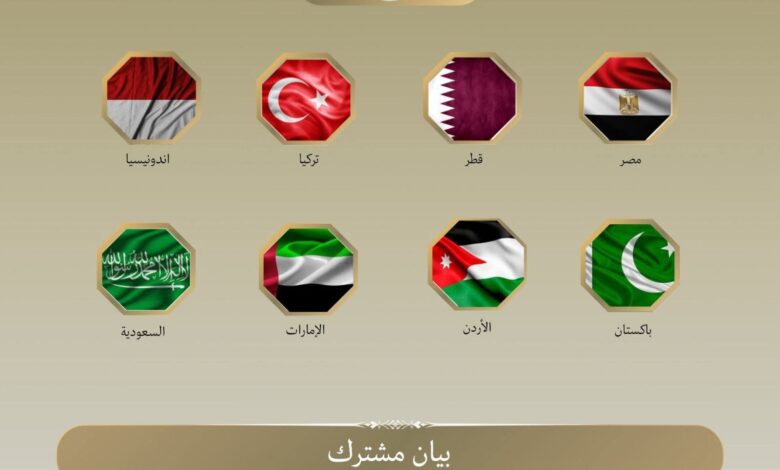أدان وزراء خارجية جمهورية مصر العربية، المملكة الأردنية الهاشمية، الإمارات العربية المتحدة، جمهورية إندونيسيا، جمهورية باكستان الإسلامية، جمهورية تركيا، المملكة العربية السعودية، ودولة قطر استمرار سلطات الاحتلال الإسرائيلي في إغلاق أبواب المسجد الأقصى/الحرم القدسي الشريف أمام المصلين المسلمين، خاصة خلال شهر رمضان المبارك.