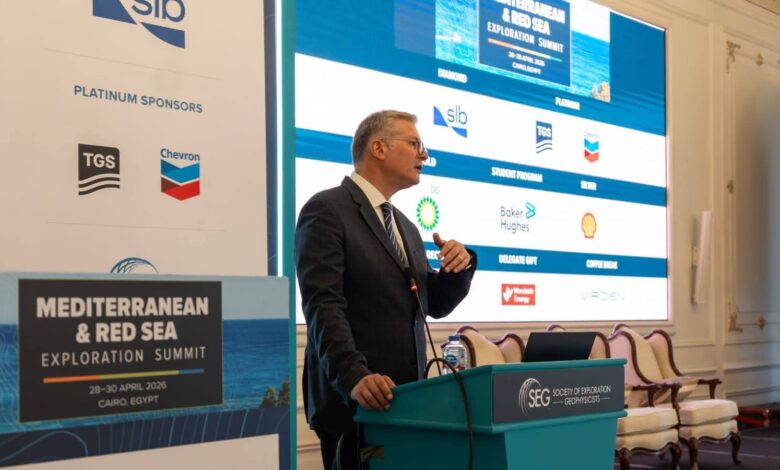 جاء ذلك خلال الكلمة الرئيسية التي ألقاها الوزير في قمة «استكشاف الموارد بالبحرين المتوسط والأحمر»، التي تنظمها جمعية الاستكشافيين الجيوفيزيقيين العالمية (SEG) بالعاصمة الجديدة، بمشاركة 150 خبيرًا من مصر و15 دولة، وممثلي نحو 40 شركة عالمية، حيث شهدت القمة تقديم 40 عرضًا فنيًا حول أحدث ممارسات الاستكشاف.