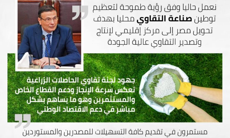 من جانبه، أكد وزير الزراعة، علاء فاروق، أن الوزارة تسعى حاليًا لتوطين صناعة التقاوي محليًا لتقليل الاعتماد على الاستيراد وتحويل مصر إلى مركز إقليمي لإنتاج وتصدير التقاوي عالية الجودة، مشددًا على أن جهود اللجنة تعكس سرعة الإنجاز ودعم المستثمرين والقطاع الخاص، مع التركيز على جلب أحدث الأصناف العالمية وتوطينها بما يعزز تنافسية المنتج المصري في الأسواق الدولية.